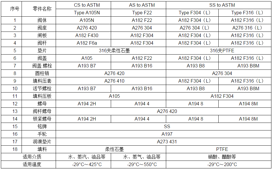 Z41H/Y鍛鋼閘閥 900Lb-1500Lb【閥門零件材質及連接尺寸】: