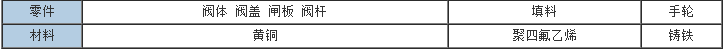 內螺紋黃銅閘閥主要零件材料: