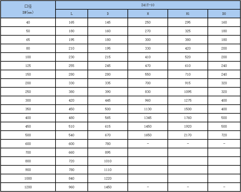 Z41T明桿閘閥結構圖及主要外形尺寸(法蘭尺寸按 JB78 PN1.0MPa規定):