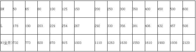電動彈性座封閘閥主要連接外型尺寸