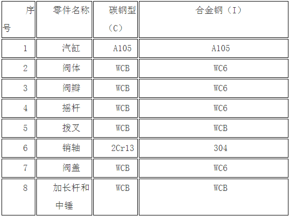 H664Y/CKH643H抽氣止回閥主要零部件材質:
